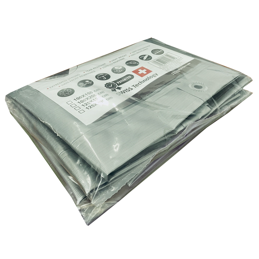 Εξαιρετικά ισχυρό Ανθεκτικό στο σκίσιμο Ελαφρύ 100% αδιάβροχο 100% αντοχή στον παγετό 100% ανθεκτικό στην υπεριώδη ακτινοβολία 100% ανακυκλώσιμο Διάσταση: 125x200cm